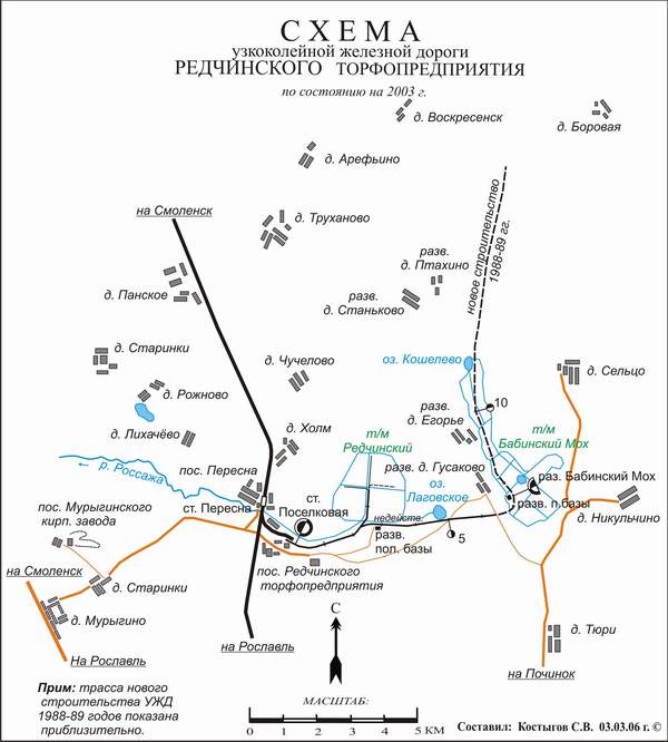 It goes north from Rantsevo (location Wikimapia link) to Kliuchi peat field.