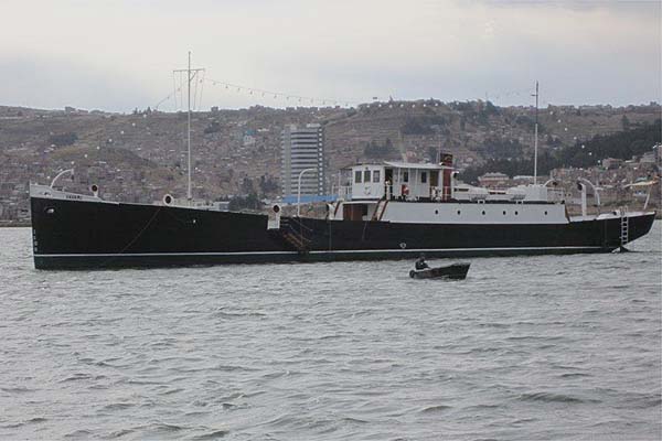 We sailed into the docks on a lake cruise. S.S. Ollanta, the passenger ship built 1930 by Earles of Hull which provided the overnight service to Bolivia until 1981 is berthed