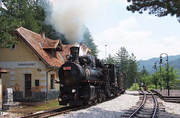 No. 83-173 passing Golubin station. This isn't an original building at all but constructed as part of a film set not that long before our visit.