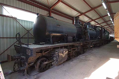 Two views of 2-6-0+0-6-2 Garratt no. 106, with its unusual cylindrical water tank at the front, in the new store at Manresa Alta. Sadly there's no current plan to restore it to working order - it's far larger than is needed for the steam specials. Note that this is a secure building and there's no-one in attendance there. It's a long way to go there and the trip would very probably be in vain unless you've arranged your visit in advance.