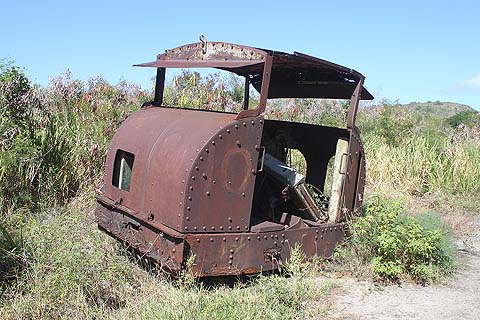 A new compound has been cleared for the power company at the location of the former yard and as a result four more diesel locos as well as a large number of cane wagons formerly hidden in the vegetation have emerged, while the two unidentified loco remains from last year have since been identified as No. 19 & 20. These include locos No. 8 and 21, now stored on the former main line right below the airport parking lot. This only leaves the fate of five locos unknown (No. 9, 11’, (13) “Churchill”, 14 and 15).
