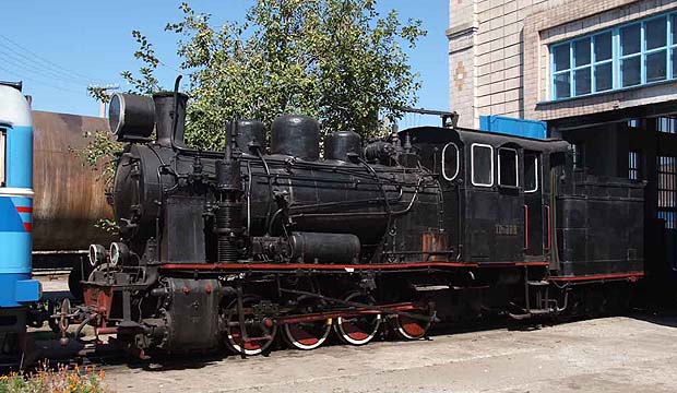 Little (Class 9P) and large preserved broad gauge steam in Kiev: