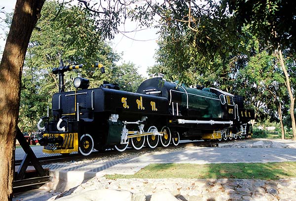 Hans Hufnagel reports on his visit: Thailand As it does every year, the River Kwai Festival at Kanchanaburi took place from the end of November to the beginning of December. The short scene of crossing a Japanese military train over the River Kwai Bridge was performed by the 2-6-0 steam loco 715. The same type of engine 713 was waiting as spare loco at Kanchanaburi railway station. The Garrat loco ( 2-8-2 + 2-8-2 ) nr. 457 has been removed from the area of the railway station and is now plinthed on a short track in the park in front of Kanchanaburi railway station.