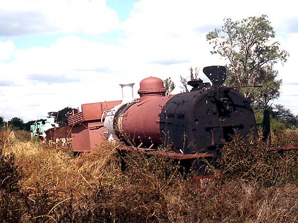 In 2003 the main line of Zambia Railways (ZR) running from the Zimbabwean border at Victoria Falls to Kitwe, and some branch lines in the copperbelt, was privatized. The new company, named Railway Systems of Zambia (RSZ), announced in the press that they would stop running down the infrastructure and that they would improve the condition of the railway network. Nothing has come of this so far, as anyone can see on a visit to Zambia. The branch line from Livingstone to Mulobezi was not included in the privatization and it is still controlled by ZR. The Njanji Commuter Service in Lusaka was not included either, it had already closed down. My last visit in Zambia was 8 years ago and now, more than two years after the change of ownership, I was eager to see the present situation. For me as a self confessed railway archaeologist, a large number of steam locomotives dumped in the north of the country over 30 years ago was another reason to plan this trip. The Mulobezi Railway Completed in 1931, this line was a part of the private Zambesi Sawmills Railway (ZSR) network. The purpose was the transport of timber, cut from the rich forests to the north and west of Livingstone. Railway sleepers for the Rhodesia Railways (RR) were a speciality. The workshops and running shed of the ZSR were located in Livingstone, they have become the railway museum. The main line to Mulobezi still exists, but all of the branches were lifted in the beginning of the seventies. In January 1973, after the Zambezi Sawmills closed, the line was taken over by Zambia Railways. The sawmill in Mulobezi finally shut down around 1994. The people of this small town were faced with the choice of moving or looking for another living. The responsibility for these people is the reason why the government, through ZR, still provides a weekly mixed train to Mulobezi. The Investor who is now running the line to the copperbelt did not wish to become involved with the rail service to this rural part of the country. There is no direct road from Livingstone to Mulobezi and the indirect way is mostly unpaved and impassable during rains. A stoppage of the rail service would be disastrous for the local people. The railway is the nerve centre of the region, as can be seen by anyone riding on the train to Mulobezi. “The train to Mulobezi should depart every Wednesday at 8am.“, said the Livingstone Station Master on the phone. He did not want to talk about other details, like arrival time in Mulobezi or the return in Livingstone. Usually the train arrives back at the end of one week, barring serious problems. Fitted out with these little gems of information before leaving Germany, we started our adventure. The tour started in Bulawayo on the Victoria Falls train at the end of May 2006. The two man expedition was completed by Graham, a Zimbabwean friend, who had never been to Zambia before. After arrival in Livingstone the railway museum was the first item on the agenda. About twenty steam locomotives of the former RR and ZSR are displayed in an extensive area in superficially good condition. I did not visit the RSZ loco shed because I did not expect to find any steam locomotives there, they were all scrapped or sent to the museum around 1995. On a visit in 1994 I saw many dumped Garratts and 12th class engines in the shed yard. The Area Manager of Livingstone told me that nowadays there is only one steam locomotive is left, apparently 12th class 204. It is proposed to put it up as a monument in front of the railway station. In good time, some minutes to 8am, one European and one Zimbabwean traveller turned up at Livingstone station, loaded with water and canned food for a week, to be on the safe side. The ticket to Mulobezi cannot be purchased at the ticket office in the main building, where one can only get tickets towards Ndola. To buy a ticket for the Mulobezi train, you visit a small building in the station forecourt, where the office of the Mulobezi railway is located. The fare for a single trip to Mulobezi, 163 km away, is 18.000 Kwacha, nearly 5 Euro. Sammy, the Train Manager, was very sorry to tell us that the train would not depart on time. The only platform was still blocked by a RSZ train, which had arrived from Ndola in the night. He could not say when the coaches would be removed so that our train could be accommodated. Indeed, it was only at 1 pm that our train found the line to Mulobezi after a short shunt in the Victoria Falls direction. This was necessary because the line branches off from a headshunt in the opposite direction to the station. All trains to Mulobezi leave Livingstone Station backwards. The arrangement of the train was very interesting: A U15C type diesel loco (No. 02-311), build by General Electric, three quite battered economy coaches ex ZR, one staff coach, a snack car, a tank wagon for water and plenty of mostly empty wagons for freight and cattle. The crew of the train was remarkable as well. Two drivers, a train manager, two conductors, one freight conductor with some helpers, a chef plus assistants, two railway policemen with submachine-guns, three wagon examiners and three permanent way workers. Not counted were persons belonging to the train, but who could not to be identified. The first stop of the train was only a few kilometres outside Livingstone at “Sawmills”. This compound was erected by the Zambesi Sawmills Company for its employees. At this stop all available standing room was occupied and the train got really packed. At a snail’s pace the ride continued through the typical bush landscape of southern Africa. The milestones helped to calculate the speed, which did not exceed 15 km/h most of the time. On the way to Mulobezi the train gets emptier stop by stop as the people who went to Livingstone to sell their goods, mostly charcoal and livestock, arrived home. Some stops where made to provide the rural population with water from the tank wagon. They were waiting for the train with empty co