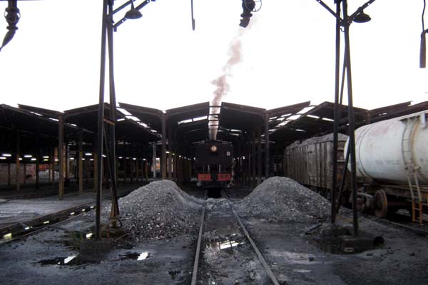 Ralf Mandera reports on his June 2010 visit, it's slightly at variance with what seems to have been intended for the world cup period - see the report on this site from May 2010. Quite where 525 was is material. Just got back from Zimbabwe where I managed to slip to Bulawayo for a couple of days. With regards any of the 'news' about it being unsafe I would say to anyone who wants to go (I flew into Vic Falls, so can't speak for Harare), get on with it as the locals were no problem. You may need to get an indemnity signed by the station master at Bulawayo for the steam shed if the Security ask but after we got this they were quite happy for us (travelling with the wife) to footplate it. Anyway the news is good or bad depending on your viewpoint.613 was in steam and shunted the station on the 11th June which seemed to be no problem, with the possible exception of any active QJ', this might be the largest 'active' steam left...who knows...if so first time that a British built loco has held that moniker for probably a century). Anyway In the shed 395 (what ever that was originally! was it 424?) had been working a day or two before hand but had blown something in the boiler so it was waiting to be repaired. 613 was the only other loco that might be repaired although it won't be active for some time judging by the various bits missing. The drivers seemed confident though. In Vic falls 512 was cold but the baboons found it useful for the occasional drink of water. It does get run every week or two at present for the train to the bridge but that is it. The 'Steam Safaris' every month seem to be operating (I think that's what 395 had been on) and it would seem that as long as there is a loco available these will continue. As a footnote with regards to the 20 class Garretts. Was talking to a couple of different old guys. Jonathon...who used to drive them and commented on the size of trains these things were capable of moving and also the 'Texas Ranger' a slightly eccentric Expat who still works as a clerk for the railways .He said that some years ago 5 20th class Garratts were completely rebuilt by a third party but owing to some decision from on high were steamed straight to the scrap dealers rather than back to work...a sad day. There seemed to be no steam activity at Thomson Junction for Wankie apart from a diesel. 512 at VF: