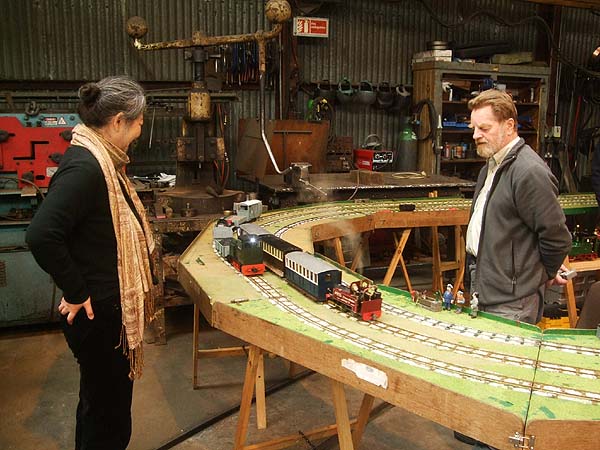 Inside my 'English lady' admires the model railway layout while I keep my hands out of my pockets with a fine array of literature available.