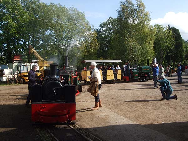 For convenience I have now grouped lifestyle illustrated features by topic: This page is just one of several describing aspects of our '2011 new life', for earlier and later pages use the West Gloucestershire link above. Just two miles (3km, 20 minutes on the bicycles) from Mitcheldean, the small engineering firm of Alan Keef (http://www.alankeef.co.uk) have their workshops where they construct and repair all kinds of narrow gauge railway equipment. Once a year they hold an Open Day for the enthusiasts and there are always two or three locomotives in steam for the occasion with short rides available on their test track. It's very much a family occasion and, while the average age of the visitors probably exceeds 60, there are plenty of members of the younger generation of enthusiasts present too. Parts of the yard have multi-gauge track to test locomotives - 600/610mm, 750/760mm and 914mm (that's 2ft, 2ft 6in and 3ft in old fashioned units)