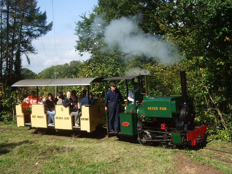 On view were the following steam locomotives, at least four more were in pieces inside the workshops. Jack is a cut down Andrew Barclay which saw service at the Provan Gasworks in Glasgow. Taffy is an Alan Keef built De Winton replica. Peter Pan is Graham Hall's Kerr Stuart. All these are 600mm gauge but the loco in grey undercoat is a metre gauge Krauss which has just had a replacement boiler fitted.